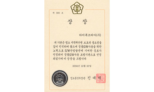 정품 S/W 사용 모범기관 수상 - 정보통신부