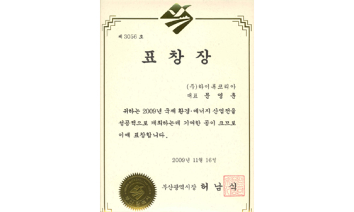 국제 환경/에너지 산업전 표창의 건 - 부산시