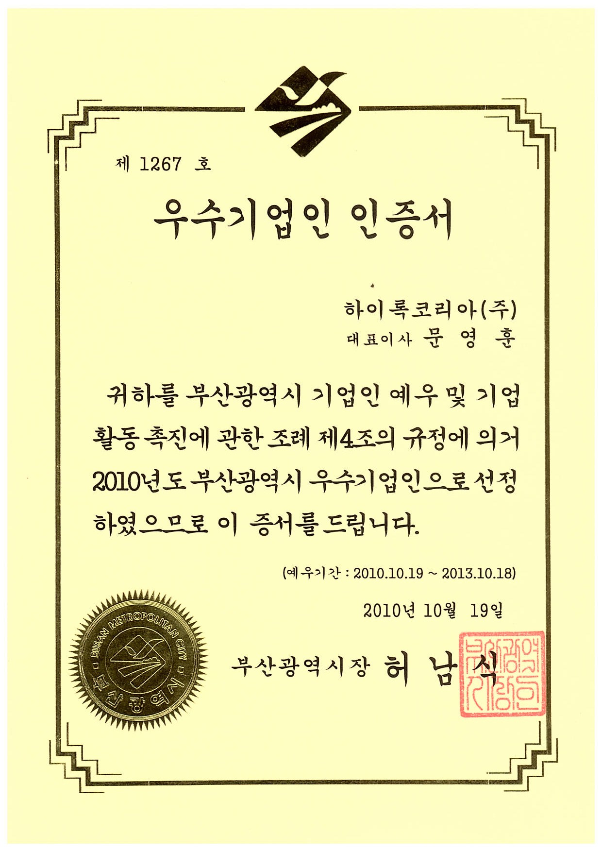 지방중소기업 육성 표창장 - 부산.울산지방중소기업청