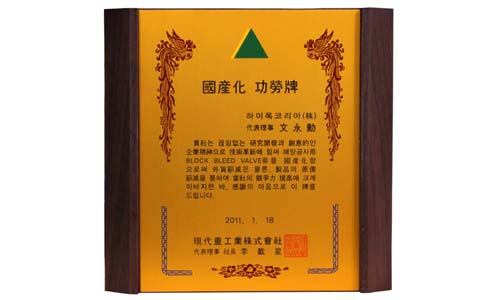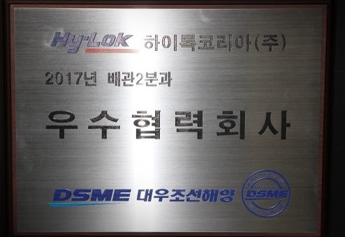 Tube Fitting 및 Hose 국산화 감사패 - 대우조선해양