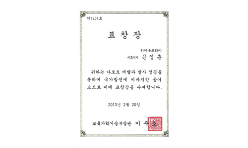 나로호 개발참여 표창장 수상 - 교육과학기술부