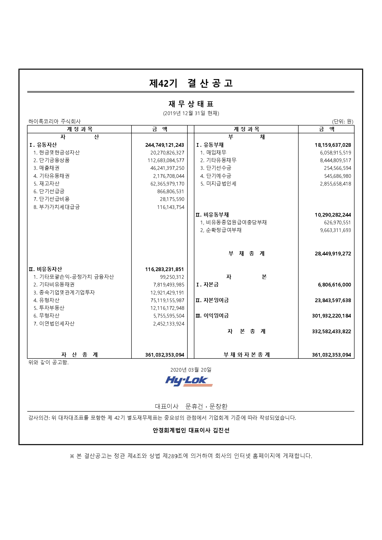 제42기 결산공고