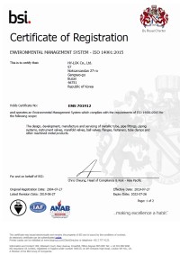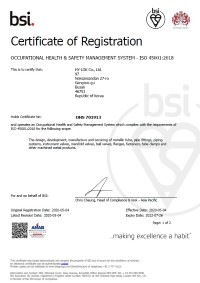 하이록코리아는 ISO 14001 인증과 동시에 안전보건 업무의 국제화에 발 맞추어 영국표준협회인 BSI로부터 ISO 45001에 대한 인증을 획득하였습니다.