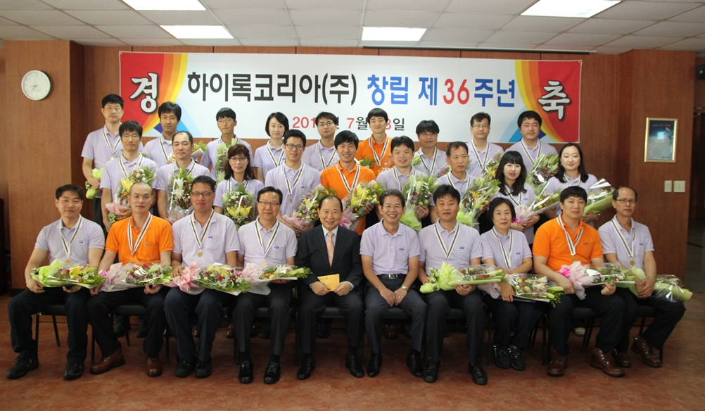 하이록코리아㈜는 2013년 7월 26일 송정동 본사에서 전 임직원이 참석한 가운데 제 36주년 창립기념일 행사를 가졌습니다.