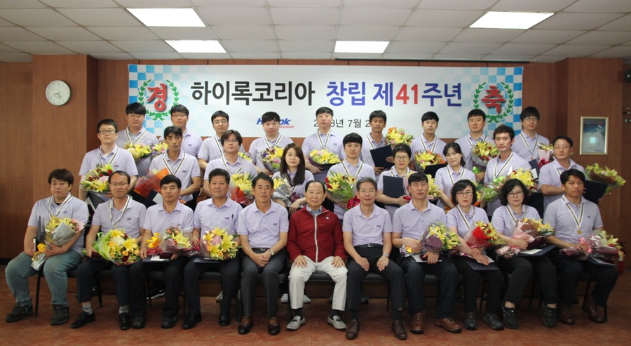 하이록코리아는 2018년 7월 27일 부산 강서구 송정동 본사에서 전 임직원이 참석한 가운데 회사 창립 제41주년 기념행사를 가졌습니다.