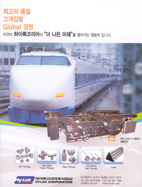 당사는 1978년 현대로템㈜ (前 현대정공㈜)에 EMD규격 피팅 납품을 시작으로 지난해 인도 델리 3기 전동차의 에어 파이핑 모듈 수주까지 우수한 기술력을 바탕으로 철도 차량 분야의 영역을 점점 넓혀가고 있습니다.